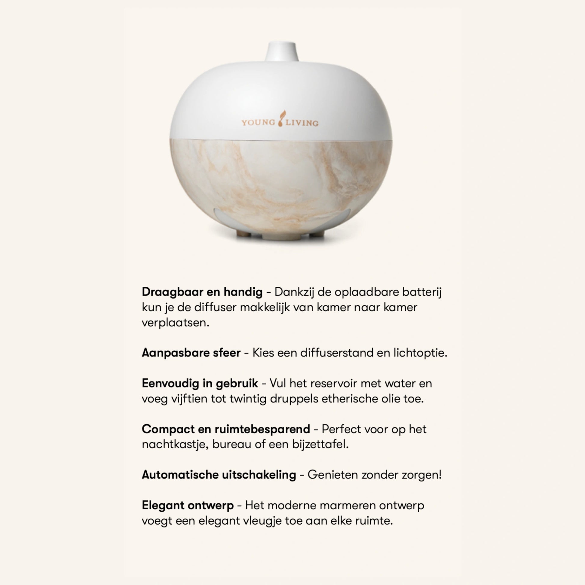 Met de AromaGlobe diffuser geniet je niet alleen van de kracht van essentiële oliën, maar ook van een ontspannen en harmonieuze sfeer, waar je ook bent.